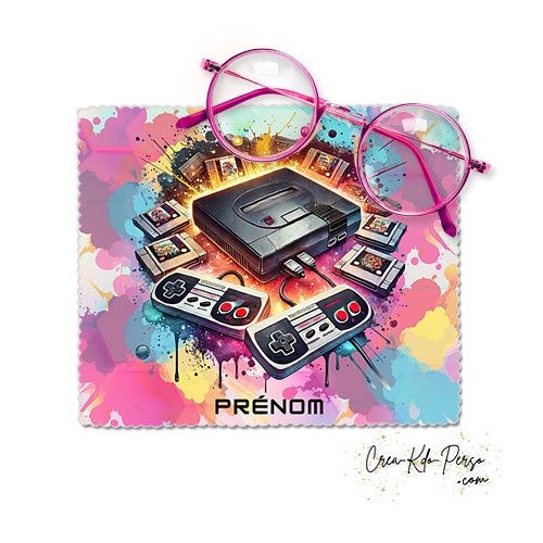 Essuie-lunette chiffon à lunette personnalisable thème retro gaming console de jeux vidéo . Accessoire pour lunettes et écrans personnalisé.