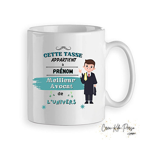 Mug Tasse cadeau pour le ou la Meilleur avocat ou avocate de l'univers, version homme ou femme personnalisé prénom.