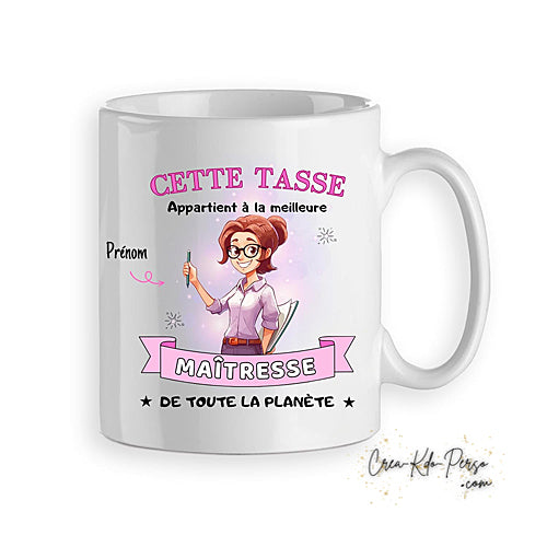 Mug cadeau Maitresse Maître meilleur de la planète personnalisé