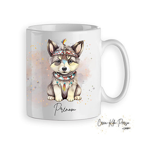 Mug tasse loup native America style indien cadeau animal totem personnalisé prénom.