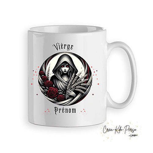 Mug tasse signe astrologique Vierge zodiaque horoscope thème gothique personnalisable prénom.